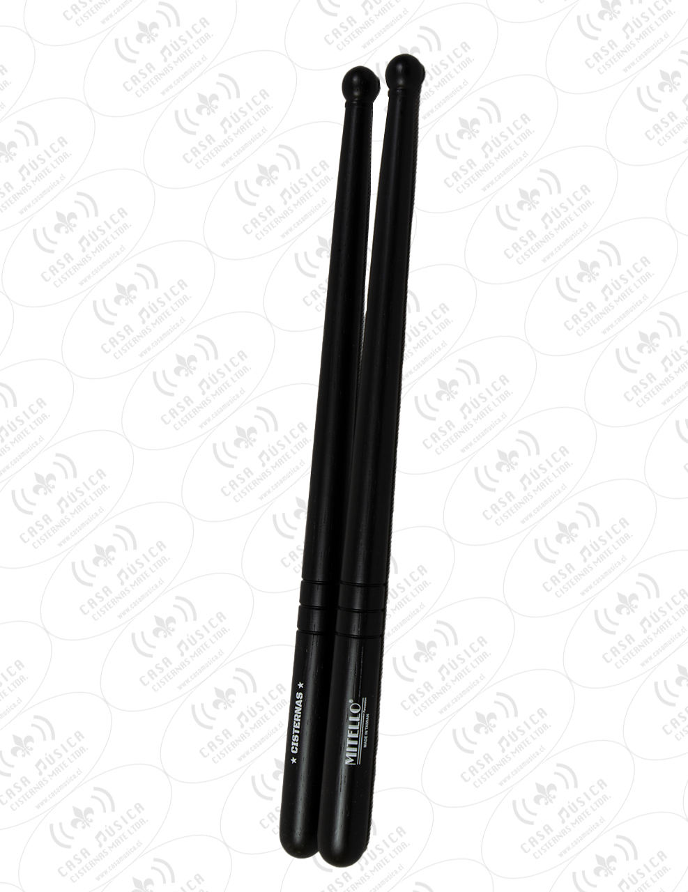 Baquetas cónicas CISTERNAS, fabricadas en madera Hickory, diseñadas específicamente para uso en baqueteros de cajas terciadas. La madera Hickory combina rigidez y flexibilidad, entregando alta resistencia al impacto sin perder elasticidad durante el uso.